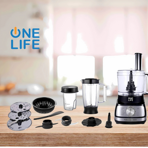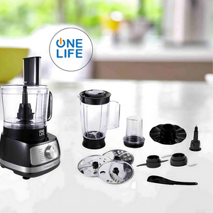 محضر الطعام وان لايف 1000 وات وعاء سعة 2 لتر- FP1001BS- أسود-ستانلس ستيل