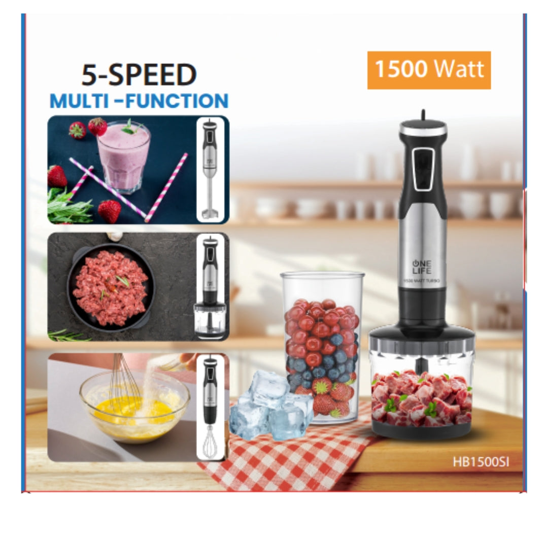 مجموعة هاند بلندر وان لايف استانلس 1500 وات كبه 500مم- HB1500SI - استانلس ستيل